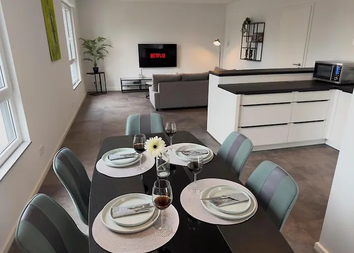 Luxus-Penthouse Mit Terrasse & Klima Lejlighed ferielejlighed har udsigt over haven og ligger 4 km fra Niederpleiser Burg. Denne ferielejlighed består af en terrasse samt 2 værelser og 2 badeværelser.